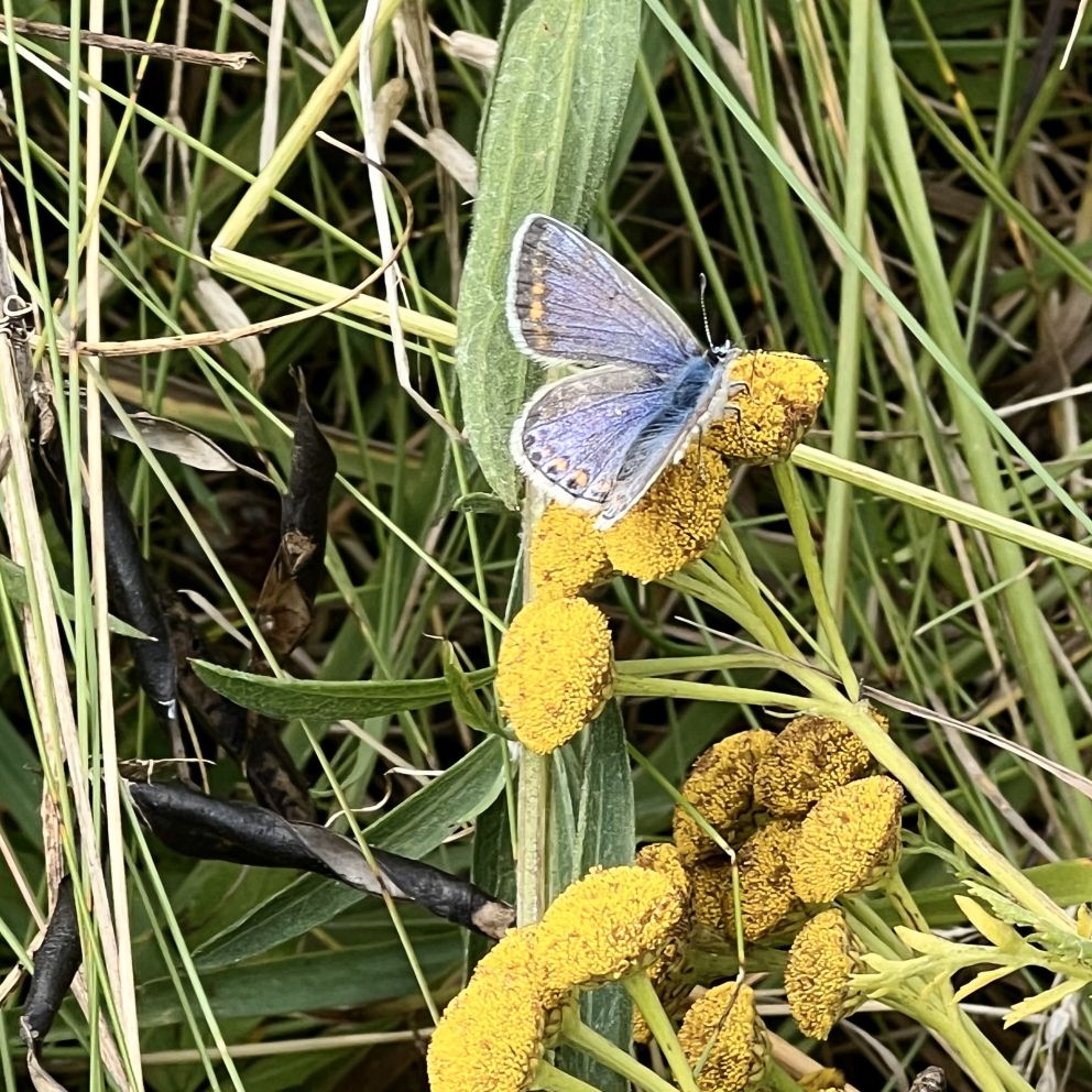 Fugletårnet blev aflagt et besøg, og herfra kunne der observeres rigtig mange fugle. Nogle endda forholdsvis tæt på, i de nære lavninger. Her gik der unge brushaner, Hjejler og Almindelig Ryle, Præstekraver, Vibe og Hvid Vipstjert. I den høje blomsterbevoksning observeredes en Gransanger. I en anden bevoksning faldt interessen på nogle sommerfugle. Der blev observeret Dagpåfugleøjer og Grønåret Kålsommerfugl samt en Almindelig Blåfugl, tillige med flere eksemplarer af Mørk Jordhumlebi der alle hyggede sig i den gulblomstrede høje bevoksning. TAK! til Gunnar Knudsen for bestemmelse af insekterne.