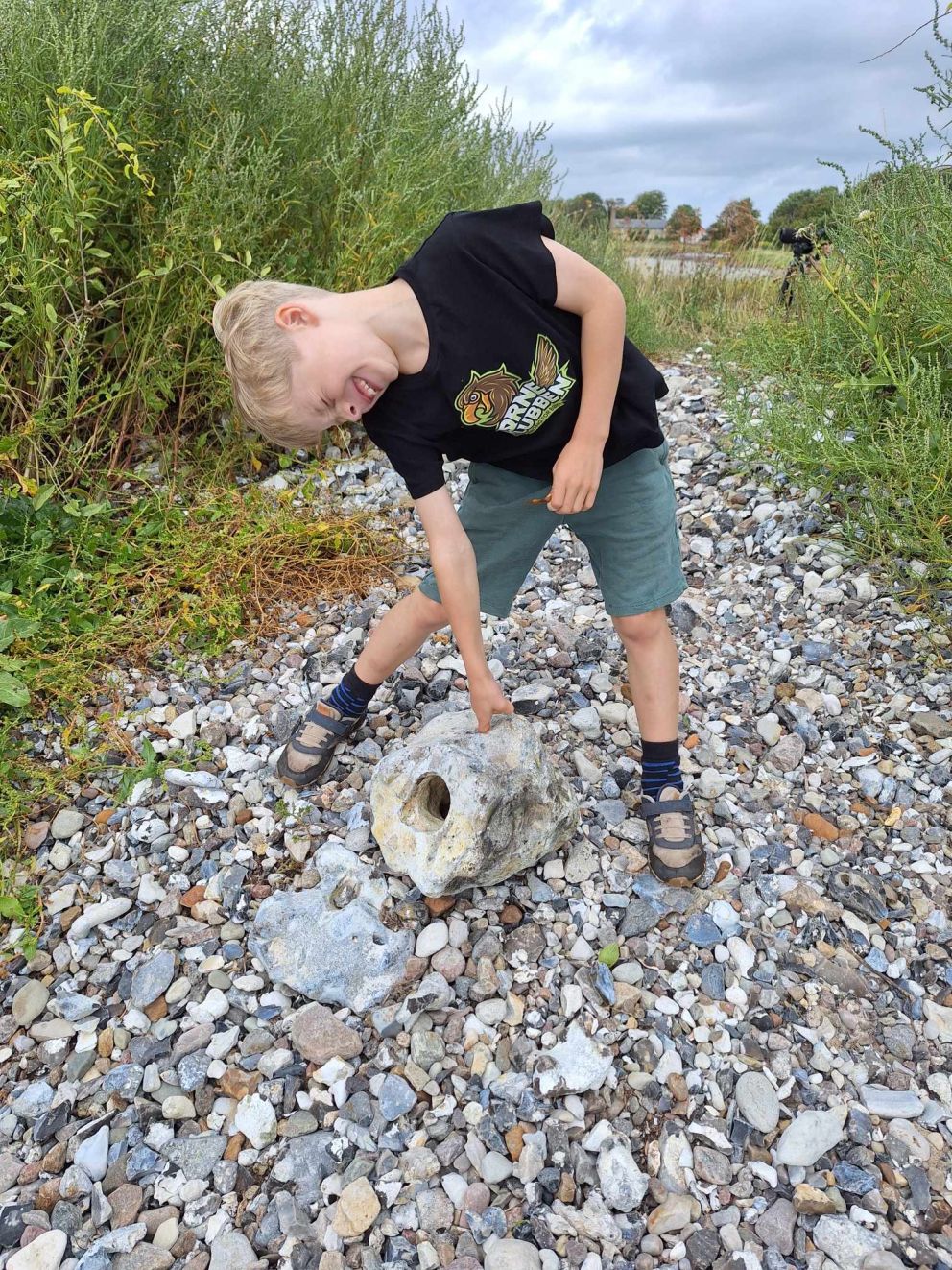 Især børn er jo meget optaget af at kigge sten, og det belønner sig også ofte. Selma fandt på stien ved fyret en forstenet ”Dodo-bird”. Et flot fund som vi efterfølgende, da Selma blev meget genert af al den megen opmærksomhed med mobil-kameraer.