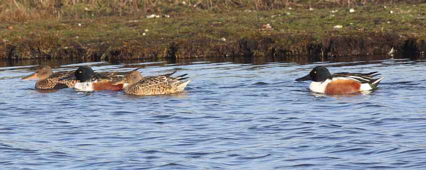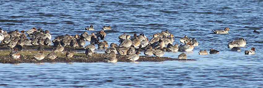 Skønsmæssigt omkring tusind svømmeænder - af de almindelige manglede - af gode grunde - kun Atlingand. Jeg så kun én Knarand, ellers var der et halvt hundrede Skeænder, omkring halvfjerds Spidsænder - resten delte sig ligeligt mellem Grå, Pibe og Krik.