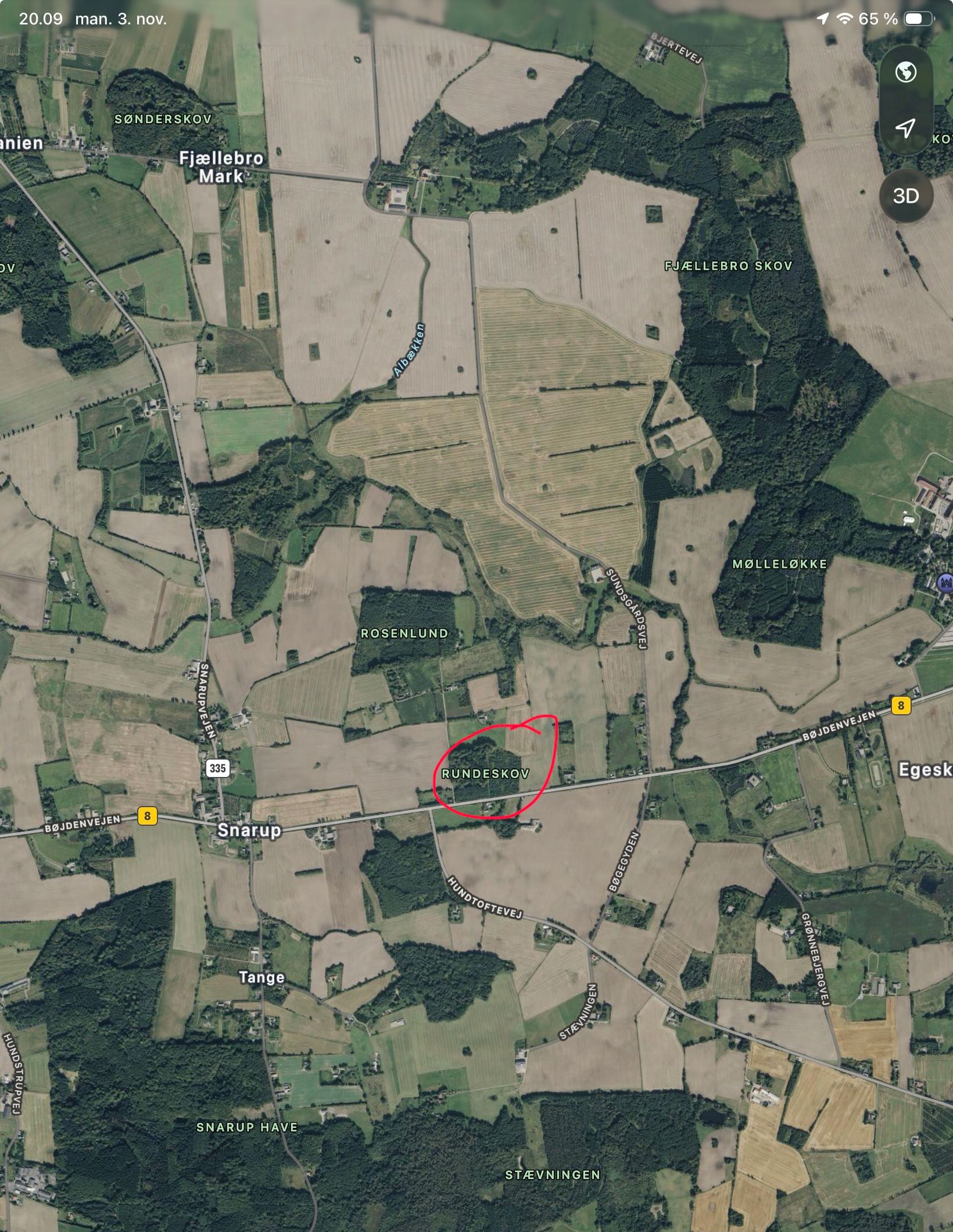 Rundeskov ved Snarup er også ofte i brug. Fuglene ser ud til at skifte mellem skoven her og skovene ved Rudme/Herringe